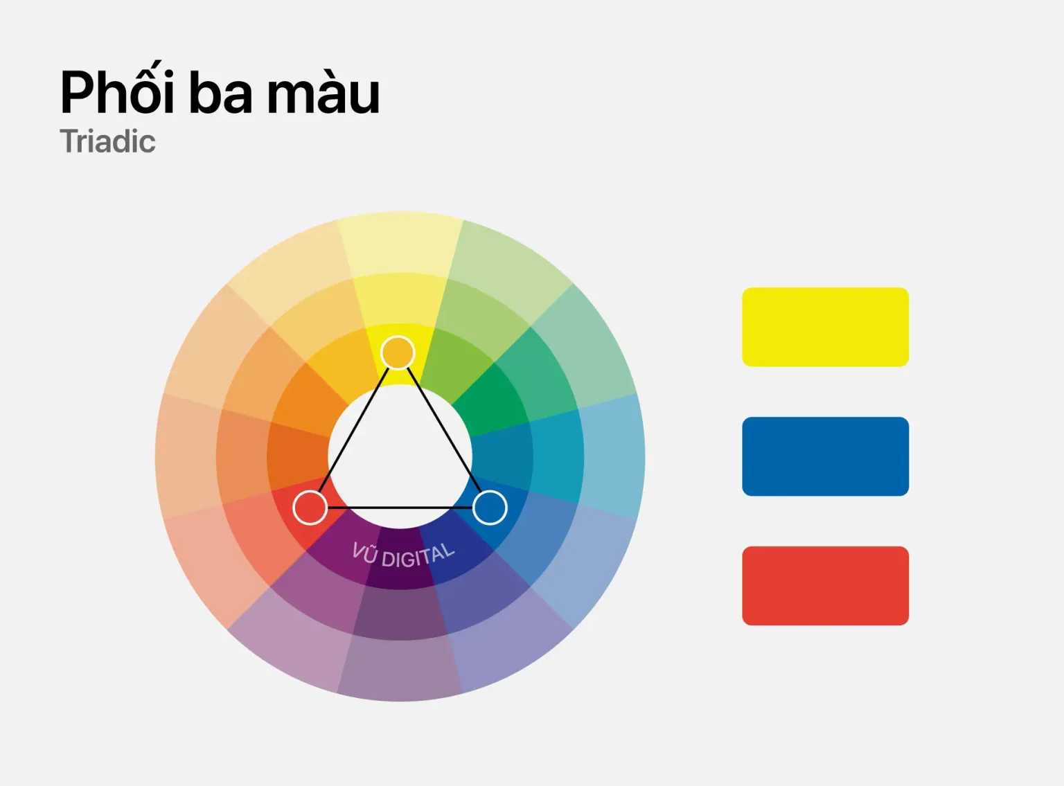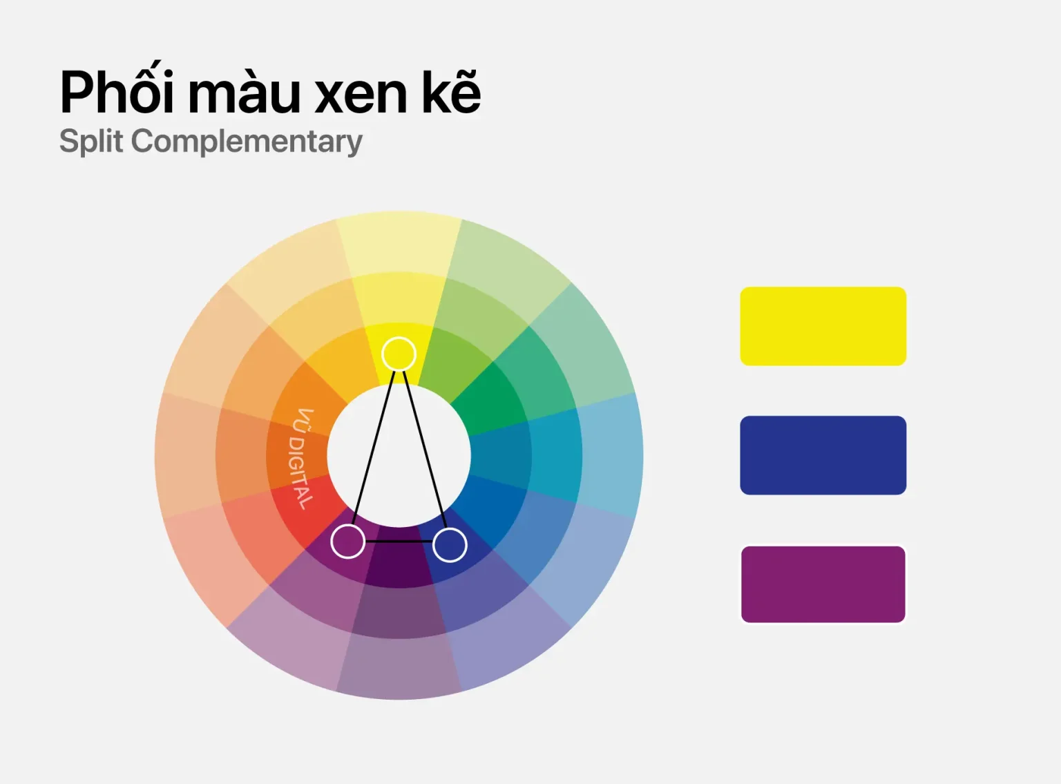 The complementary triadic color scheme uses three colors evenly spaced on the color wheel. It offers a balance between diversity and harmony. This is a highly energetic color combination, often evoking a youthful, creative, and dynamic feel.